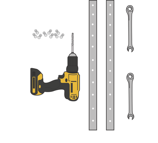Secure the first hole with the provided screws and nuts. Once secured drill the next hole and secure, then repeat. Tip: The process is easier if you secure the hardware before you drill the next hole.