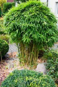 Make sure that you leave some viable limbs and cut about 1/4 of an inch above the node when you top bamboo. Without limbs, the cane cannot survive. It is usually best to leave 3 or more sets of limbs for the cane’s health and appearance. These limbs will generate more foliage to compensate for the loss of height. This will cause the bamboo to attain a very different look. Bamboo that has been done this way typically appears very lush after a few years of the increased foliage production. The picture below is of Phyllostachys viridis. This is a giant bamboo, but can me manipulated to have a unique appearance.