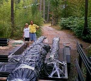 Here are some large bamboo orders that are wrapped and ready for travel, pictured with happy customers.