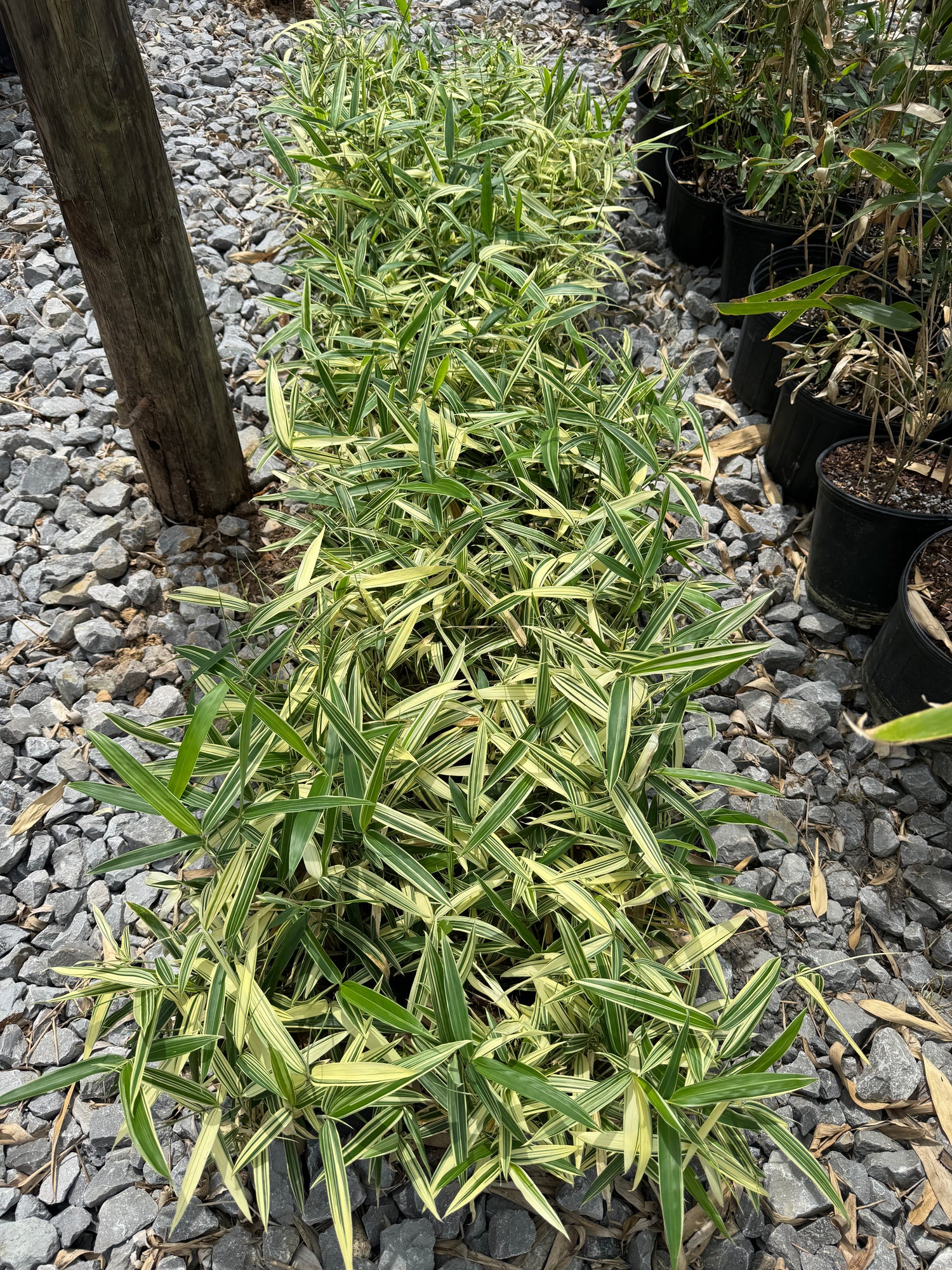 Introducing the mesmerizing Albostriata Bamboo, a delightful shrub bamboo that will add a touch of elegance and intrigue to your garden. Known scientifically as Sasaella masamuneana 'Albostriata', this enchanting variety hails from the mystical forests of Japan.