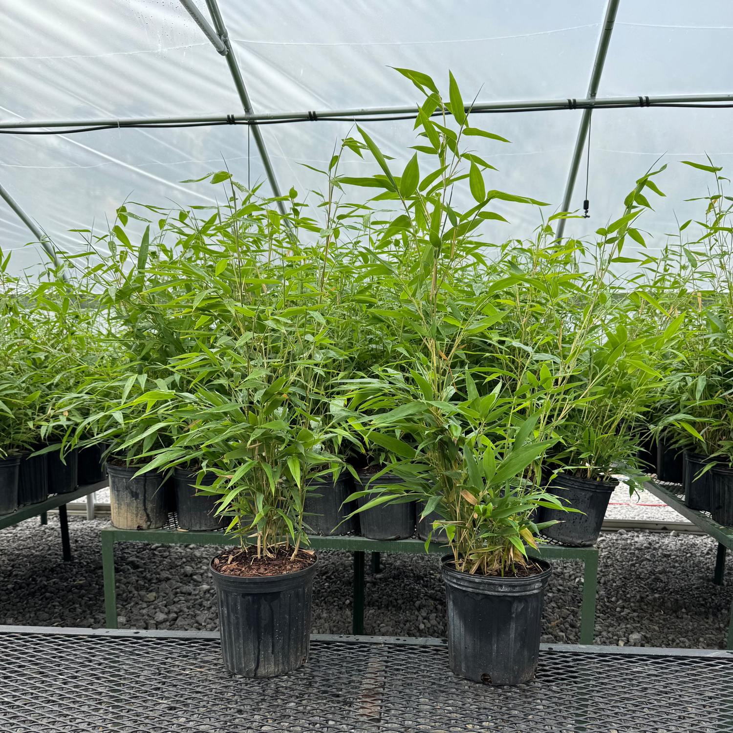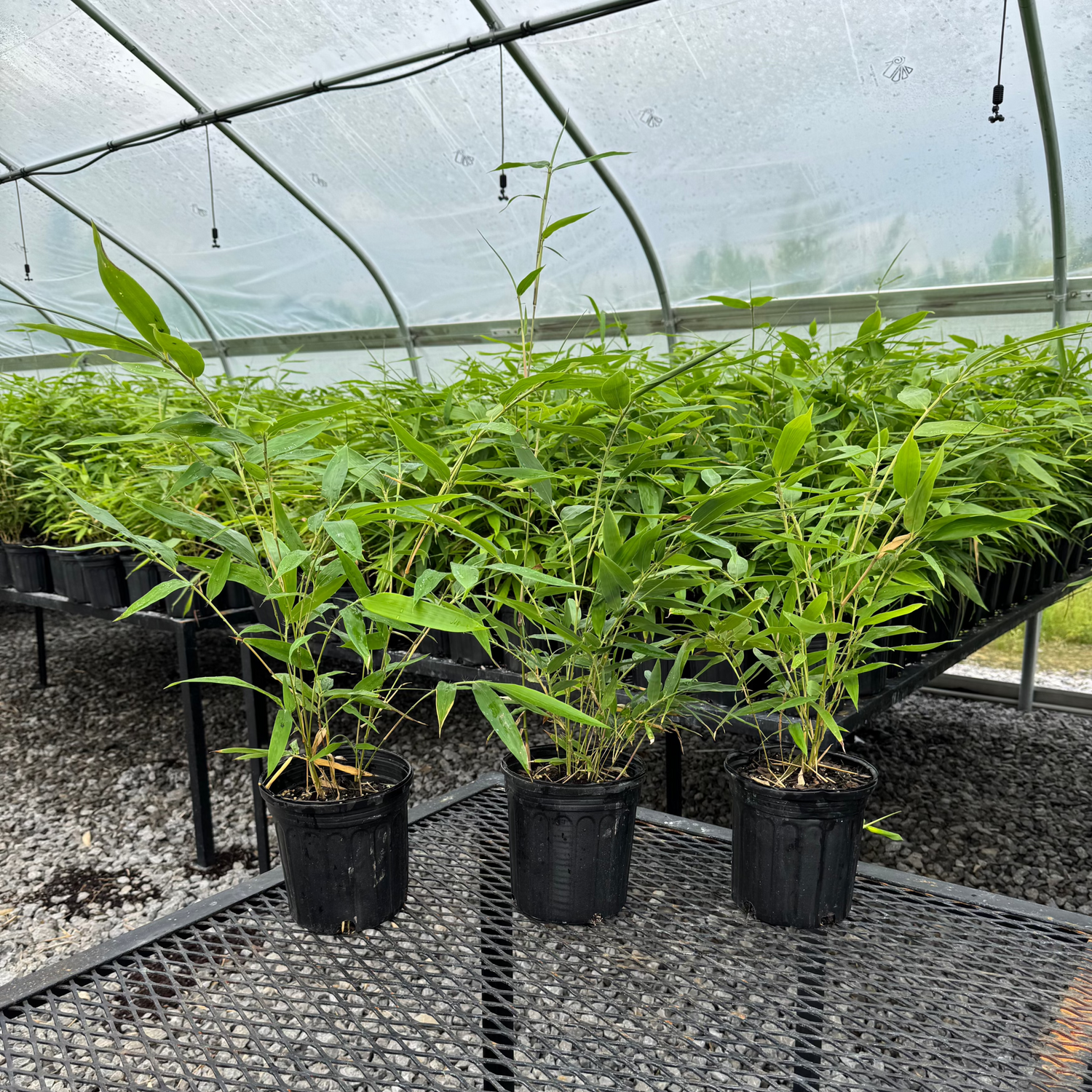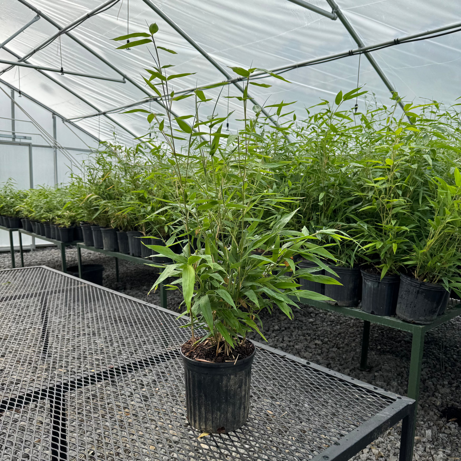 Beautiful cold hardy giant bamboo. Canes emerge green and turn ghostly gray color with sunlight exposure.