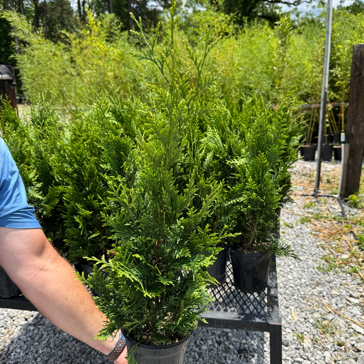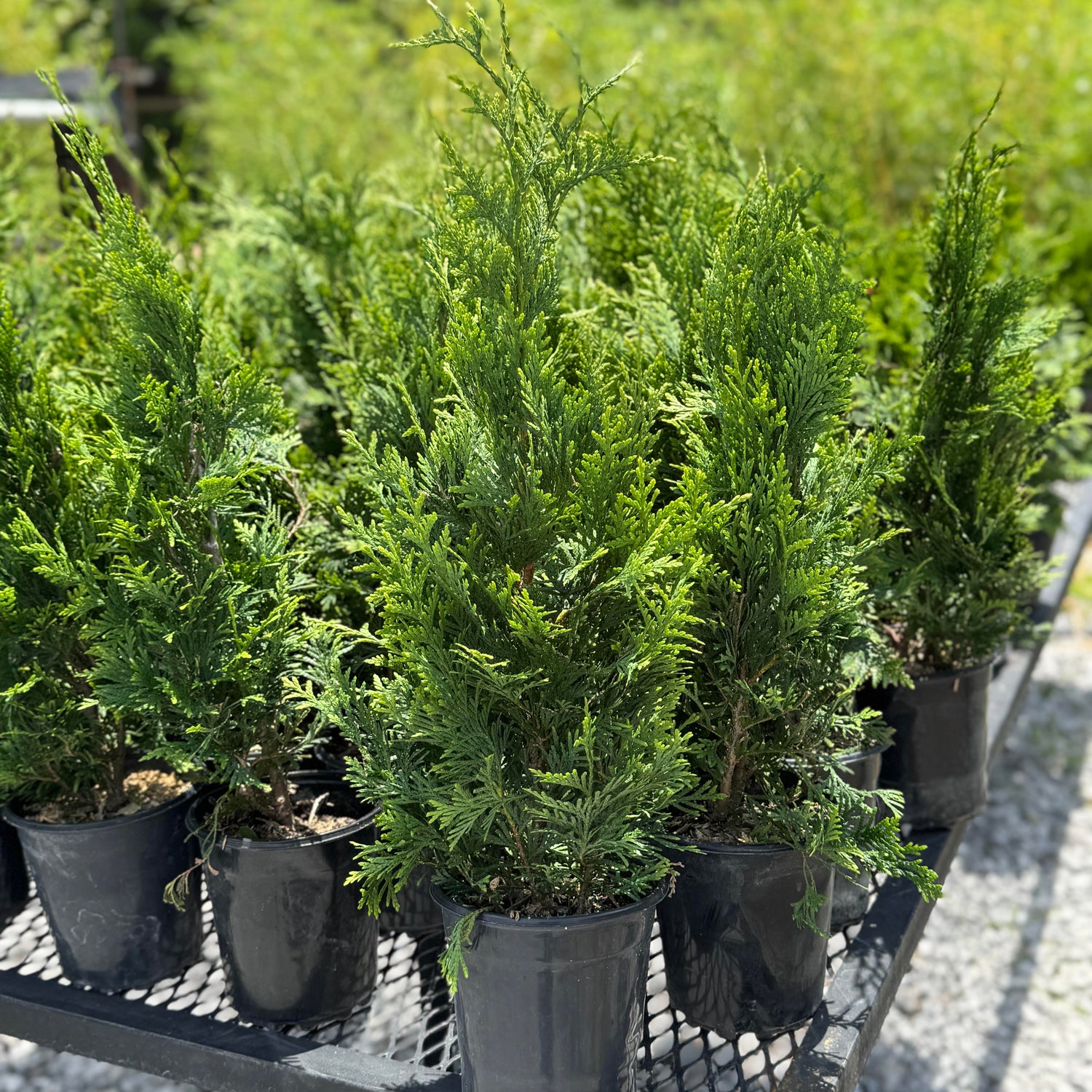 Elevate your landscape quickly and impressively with Thuja plicata 'Green Giant'. Known for its fast growth and towering presence, this evergreen arborvitae is ideal for creating robust, reliable privacy barriers and windbreaks.