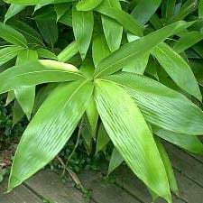 Sasa Palmata 'Nebulosa' is a beautiful bamboo with more of a tropical look than your traditional larger bamboos. The thick, leathery leaves are up to 15 inches long by 2 1/2 inches wide. Some of our customers are growing this species for use in live flower arrangements. It is native to Japan.