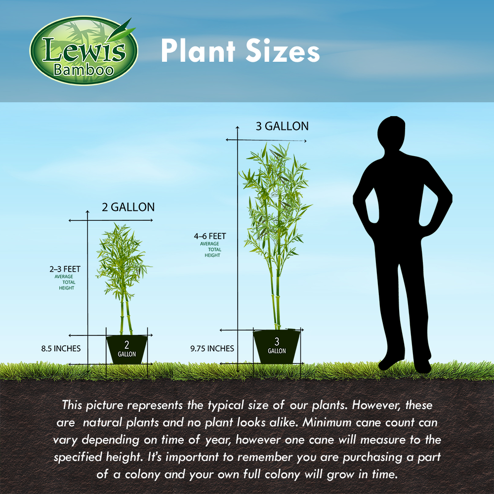 Bamboo grows a little different than most plants. The bamboo that you get initially never grows vertically again. It has babies that are taller, that has babies that are taller. Every generation should be taller that the previous year's shoots. The intriguing aspect is that each year’s growth emerges and grows to it complete height in 60-90 days. They spread as they produce larger growth, filling in and providing a screen.